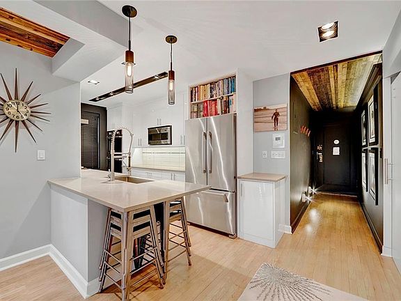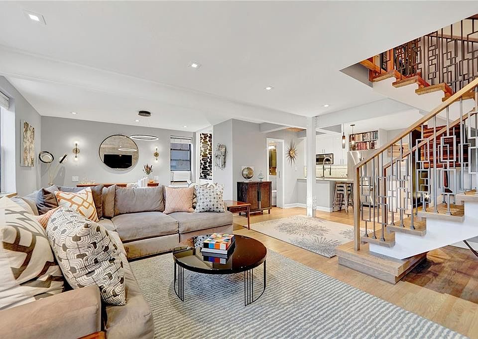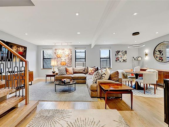 This spectacular 3 Bedroom, 2 Bath Coop Duplex is a Masterful Spectrum of Mid Century Artistry Coupled with Unique Contemporary Design. Every last detail has been thoughtfully & lovingly applied & many unique materials incorporated to enhance & create a sleek urban vibe while maintaining a warm welcoming elegance. The stylish high-end kitchen has an open layout with white cabinets, an abundance of quartz counterspace & matching breakfast counter with aluminum stools. There are stainless Bosch appliances, including Stove, Double Oven, French Door Refrigerator, Microwave, Dishwasher & a Built-in 172 bottle Wine Fridge! To satisfy storage needs and optimize space, there is a Large Pantry with a Custom Built Sliding Door. The Living & Dining Rooms have been tastefully decorated & provide a comfortable ease for entertaining with a cohesive flow & the perk of an open bar area with custom storage. The 2 full baths have been renovated & are equipped with pocket doors, Duravit Bathtubs & many other unique touches. Some other outstanding features include contemporary recessed lighting with dimmers, high-end light fixtures & modern fans, new Friedrich ACs, many custom closets with wood shelving, original refinished Red Oak Floors & modern solid core wood doors throughout. There is a stunning Custom Staircase with red oak open stairs & contemporary rails which was designed & built by a nationally recognized millwork company. Some of the materials used feature structural exposed steel & reclaimed wood from an old NYC water tank which has been used to finish the ceilings in very appropriate locations. The 3 bedrooms are on the upper floor & each has its own distinct character. Don't miss the opportunity to view & own this truly "TURN KEY" apartment. Building amenities include a newly renovated lobby, secure keyless access, state of the art intercom system, a resident super, a card operated laundry room, bike racks and short wait list for storage. Sorry, but no pets are permitted. Total Maintenance is $1259 per month (includes RE Taxes, heat and hot water)