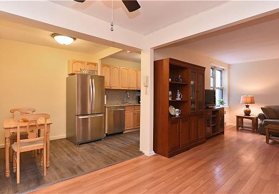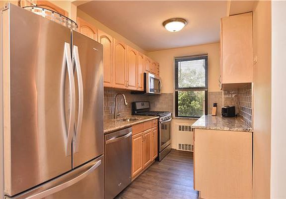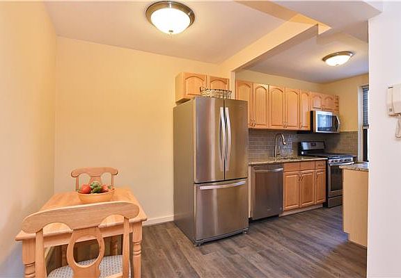 JUST RENOVATED LARGE TRUE TWO-BEDROOM APARTMENT. Open layout allowing for light to stream throughout eat-in kitchen, foyer and large living room. Brand new appliances including dishwasher, newly renovated bathroom with walk-in shower and six closets are just a few of the special things about this apartment. The beautifully maintained building offers pristine landscaping and a renovated lobby. Amenities include a modern laundry room on the main floor, a bike rack and a short wait list for storage. The location is ideal. Less than 2 blocks to the R train or the express bus to Manhattan, local bus outside the door, large supermarket across the street and close to a variety of restaurants. No pets. Maintenance. $887.61.