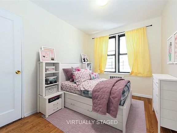 Cozy 2BR / 1BA apartment on the fifth floor of an impeccably maintained elevator co-op building in Bay Ridge. Spacious and sunny living room has a dining area. Master bedroom has double exposure. Bathroom has a window. Nice hardwood floors throughout. The building is immaculate and has a live-in super, remodeled lobby, multiple entrances for ease of access and landscaped grounds. Other amenities include on-site modern laundry room, bike rack, and storage (waiting list). Exceptionally convenient Bay Ridge location near waterfront park, subway and express bus, large supermarket across the street, and close to the neighborhood's noted stores and restaurants. This is a well-maintained building that does not allow pets.