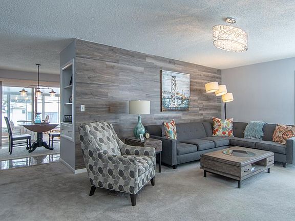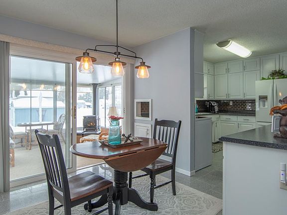 Cute front porch with welcoming yellow front door leads you into this well updated rambler with modern decor, refinished kitchen, new paint, light fixtures, custom tile entry way and kitchen/dining room flooring as well as vinyl tile plank feature wall in the spacious living room! 3 bedrooms on the main level with most interior doors being updated along with the hardware on the main level. Don't forget the 3 season porch with free-standing gas fireplace to enjoy the sun or cozy up with a book or overlook the fenced in back yard. All on a corner lot, 2 car garage, storage shed, plus great landscaping & more - a must see!