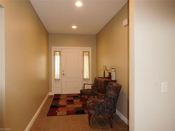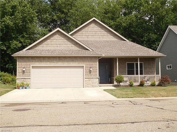 Only 4 years young this home was upgraded from basic construction. Beautiful great room with custom fireplace surround, granite countertops and tiled backsplash. Great room open to dining and kitchen. First floor laundry directly off garage so no tracking through the home. Oversized Garage has service door leading to back patio overlooking beautiful wooded grounds. Owners suite has walk in closet and bath with double sinks, separate shower stall, ceramic floors. Two additional bedrooms and bath finish off the first floor. But wait there is more. Basement finished with recreation room, two additional rooms for exercise, office, guest rooms (many options), full bath and plenty of storage area that even could be finished for more living space.