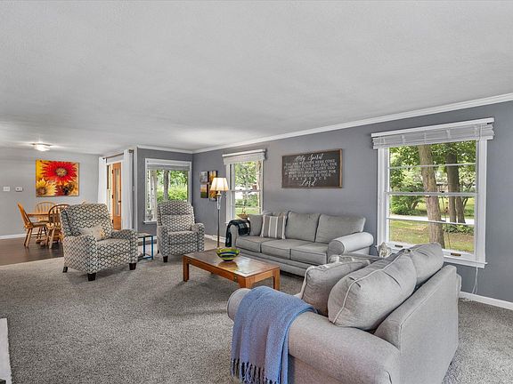 NEW PRICE IMPROVEMENT!! Sitting on a 1.25 acre corner lot, this updated Ranch home with a partially finished basement, provides ample privacy and a sense of spaciousness. The 3 bed, 2 bath home has been meticulously updated to reflect today's style. The heart of the home has hand-scraped wood flooring, granite countertops, subway tile backsplash and soft-close cabinets and drawers. The kitchen opens up to a cozy hearth room/family room. You will find a built in coffee/wine bar niche as well! The bedrooms are bright and good in size. There is parquet flooring in the 2 secondary bedrooms. The primary bedroom ensuite has a tiled, walk-in shower with built in bench. The lower level has a finished living space with fireplace and a bar making it a perfect spot for gatherings and entertaining. There is an unfinished 15x13 room that could easily be made into an office, den, gym or hobby room. Storage space will certainly not be an issue with the 30x10 unfinished area in the basement. The home sits across from the neighborhood park and is move-in ready!
