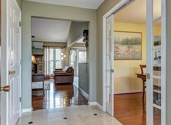 Impeccably maintained great room ranch. Beautiful, neutral decor with wood floors in the great rm, dining rm, hall and all 3 bedrooms. Open floor plan with vaulted great room with woodburning fireplace with brick surround. The formal dining room has a 4 window bay and pocket doors. Spacious breakfast room with tile floor and bayed atrium door leading to the large deck. the updated kitchen has a gas range, built-in microwave, tile floor, tile backsplash and quartz countertops. Main floor laundry with tile floor. Open staircase off the kitchen leads to the expansively finished walk-out lower level with huge family/game room, full bath and two additional rooms. The main floor bedroom wing has a large master suite with walk-in closet and luxury bath with soaking tub, double bowl vanity and separate shower. There are two additional bedrooms and a full bath. Awesome fenced yard with large patio, deck, water feature. Beautifully landscaped. Hurry - wont last! (Central Vac - no attachments)