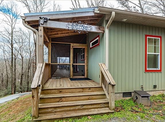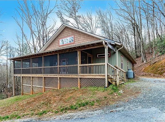 This stunning mountain home on over 5 acres is located less than 2 miles from downtown Brevard. A large wrap-around covered porch greets you as you approach the home. You enter into the great room with cathedral ceilings and cosy fireplace. The home has wonderful oak floors through-out, as well as tile in the bathrooms. All the doors are natural solid wood which goes well with the mountain setting. Kitchen has gas stove, granite counter tops , nice pantry and an eat-in island.   There are 2 master suites each with full bath, walk-in closet and exit to private deck. Large walk-in shower in one and large tub in the other. Both have tile with granite counter tops. The lower level bonus/bedroom  has a soon to be completed half bath. A large storage/shop/multi use area is located off the bonus room, it has access to yard via a garage size door and a standard door. Excellent VRBO rental information is available