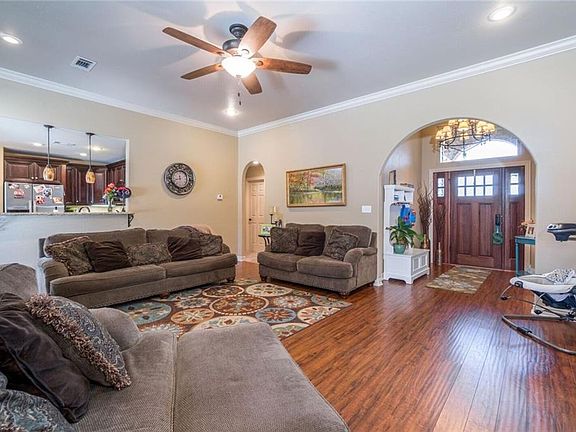 MOVE IN READY!! This home offers Granite Counters, Wood laminate flooring, split floor plan, nice kitchen with SS appliances, formal dining, gorgeous master suite w/newly tiled shower, jetted tub, double sinks and walk in closets, Open Kitchen/Living concept. Storm Cellar and nice flat yard!!