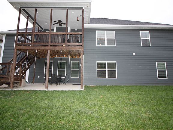 This is a custom built home. Upgraded custom trim package, custom tile work, custom wet bar and cabinets, etc. 5 total bedrooms, 3.5 total baths. 95% efficient furnace, two hot water heaters, alarm system, built in sound system, in ground sprinkler in the front and back. Very large master suite with huge walk in closet and custom shelving. Also a very large walk in pantry with custom shelving. Covered back deck that backs to woods. Home located in a culdesac.