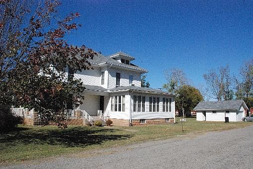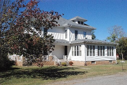 LOCATION: This home is located in the town of Wister, OK. Wister is a small town with about 1,000 people and is located about 10 miles southwest of the county seat of Poteau, OK. Lake Wister State Park, which is a 7,300 acre lake with 5 camping areas, is only a couple of miles away. The larger city of Ft. Smith, Arkansas, population about 80,000, is roughly 32 miles away. LAND: This property sits on a very level 144 x 195 corner lot. There are several mature paper shell and regular pecan trees as well as a garden spot that the current owner had used for years. Other trees include Bradford Pear, Magnolia, Crepe Myrtle as well as other flowering shrubs. SERVICES: Electric, city water, city sewer, natural gas, cable t.v., phone and mail delivery. HISTORY: Construction on this fine home was first started in 1910 by a gentleman named Mr. Karr and was completed sometime in 1912. It was one of three houses that he built in the city of Wister for prominent families of that size and style. This particular home was built for a physician by the name of Shippy. Although Dr. Shippy passed away in 1928, his wife continued to reside in the home until 1964, at which time she went into a rest home and the current owners took possession of the home and have happily lived until the present. HOME: This unique two story home has roughly 3,420 s.f. of heated and cooled living area. The lower level features a large entry, parlor, formal dining room, kitchen, living room, sleeping porch, utility and enclosed porch with entry to the small basement. The upper level has the four bedrooms all politely sitting on their corners with a full bathroom. The home has been very well maintained through the years and new windows and central heat and air has been added to the lower level. Vinyl siding and guttering have also been installed on both floors. The home has many of the original fixtures and beautiful pine hardwood floors. The entry newel post and balustrade are made of the same beautiful pine as are the door frame details. It is unknown when the sleeping porch was actually added, but the current owner has done lots of updating on the bathroom off of this space. Room dimensions and descriptions include the following: ENTRY: 10.10 x 19.6, White carpet flooring, 12’ ceilings, plaster walls, ornate light fixture and pine trim detail around all doors and baseboards. The entry door has a large glass transome window above with glass side panels. The pine stairwell is square and simple in keeping with the lines of the house. PARLOR: 13.6 x 15, Off-white carpet, mauve plaster walls with white plaster ceiling, original light fixture and gas fireplace with ceramic hearth and mirror above encased in pine. There is an arched doorway between the parlor and the formal dining room. FORMAL DINING ROOM: 12 x 12.9, White carpet, mauve plaster walls with white accent above, 12’ ceilings, pine moldings, original light fixture, fancy pine window seat and built-in storage along wall. KITCHEN: 12.2 x 13, Inlay flooring, 12’ ceilings, paneled wainscot walls with off-white above, lots of stained kitchen cabinets with rolled butcher block formica tops and backsplashes, stainless sink, dishwasher and electric kitchen stove. There is a door leading off of the kitchen which goes out to the utility room and the enclosed porch and basement entry. LIVING ROOM: 16.5 x 17.3, Taupe carpet, 12 ft ceilings, paneled and off-white textured walls, ceiling fan with light, gas fireplace with ceramic front, mirror and ornate pine mantle and surround. UTILITY ROOM: 8 x 10, Inlay flooring, plaster walls, washer and dryer connections and hot water tank. ENCLOSED PORCH: 7.6 x 20, Inlay flooring, plaster walls, door leading out to rear yard and garage. There is access to the basement from this area. The basement is roughly 8 x10. SLEEPING PORCH/MASTER BEDROOM : 12.6 x 24.6, Pine baseboards, off-white plaster walls, windows on three sides of the room and closet. BATHROOM: Inlay 12â