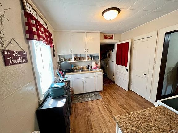 This 1938 bungalow offers 1010 sf of living area. The main level offers a quaint living room, dining room, kitchen, full bath and one bedroom. Upstairs, you’ll find an open area that is sectioned off into two bedrooms with a large walk-in closet dividing them. This area would be great for young ones as it does lack some privacy due to the openness of the upper half story. The home has an updated breaker box in the full walk-up basement, offering more room for storage. The property is situated on a corner lot and has a 1 car detached garage. A large back porch houses the laundry facilities and there is plenty of room for a deep freezer too. The front porch offers a place to relax with your morning coffee.