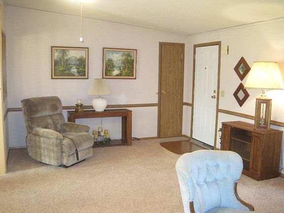 Breezeway attached between garage and house. Key box is on inside Breezeway door. Key fits dead bolt. Do not lock handle. Quiet neighborhood in small town atmosphere. Water heater,furnace and AC 3 years old.Beautifully well kept home on a large lot. Have to see to appreciate. All appliances stay. Attic storage over breezeway.