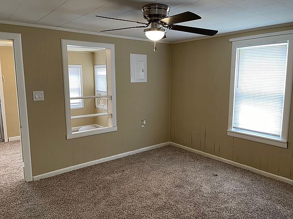2 BR, 1 bath home with extra room in the front. Vinyl siding home with metal roof. Low maintenance. New carpet, light fixtures, ceiling fans, door knobs, and fresh paint! Large, eat-in kitchen with stove and refrigerator. Screened front porch and back deck overlooking pretty yard. Large storage building with washer and dryer included.