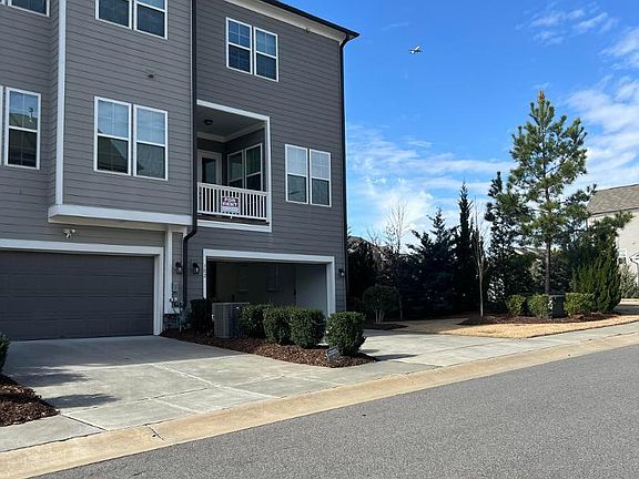 End unit 4-bedroom, 3.5-bathroom townhome in the highly desirable Savaan community in Cary. Easy access to RTP, RDU, shopping, dining, and more. This three-story townhome blends modern design with exceptional convenience. The first floor features a versatile bedroom, ideal for a guest suite or home office, complete with a full bathroom and spacious closet. The second level showcases 10' ceilings and a bright, open-concept layout, including a gourmet kitchen with a large island, stainless steel appliances, granite countertops, a stylish tile backsplash, and a gas range. The kitchen flows seamlessly into the dining and living areas, while a private balcony offers a relaxing outdoor retreat. On the upper level, you'll find a luxurious primary suite with a tray ceiling, an en-suite bath, and a generous walk-in closet. Two additional, generously sized bedrooms provide ample space. Enjoy access to premium community amenities, including a pool, clubhouse, and walking trails.