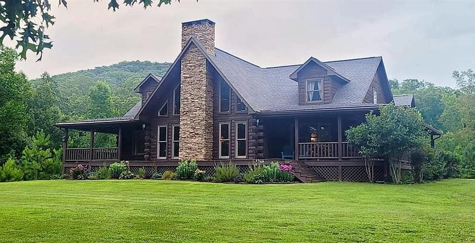 Have you been looking for privacy and acreage this is the home for you! This awesome log home with a wrap around porch, vaulted beam ceilings, hardwood floors, stone fire place and sits on 23.5 acres is just what you are looking for! Home features a large kitchen with SS appliances, plenty of counter top space and cabinets. Master on the main with large bathroom featuring two walk in closets, large walk in shower, large tub and double vanity. A guest room is also located on the main floor along with another full bath. Upstairs features 2 bedrooms with their own baths and a 3rd large room that would make for a 5th bedroom or bonus/game room. The basement features a large finished room ready to be turned into your theater room, finished office or bedroom, and a finished full bath. There's also plenty of unfished area for storage or finish it out for more space. Exterior features a salt water pool along with a pump/storage shed with a half bath, over looking a beautiful hill side of privacy. If you like to hunt there are plenty of deer and turkeys and other wildlife waiting for you!! To take the worries away the exterior of the home was stained this year and is ready for you! Call today to setup your showing!