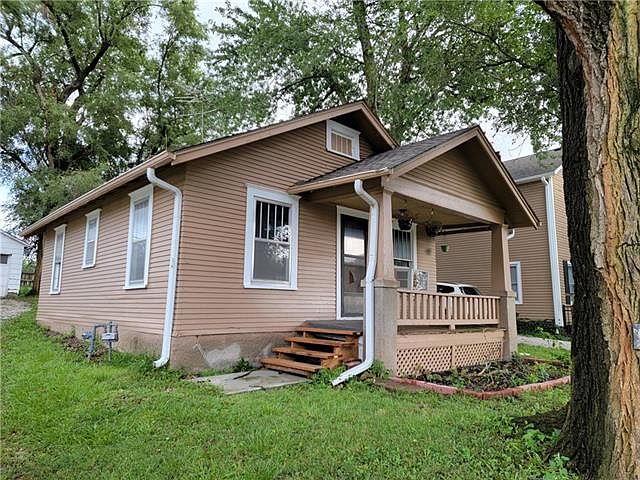 Good little home. Nice sized living room and kitchen. Pull out shelves in kitchen. Walkin closet between the 2 bedrooms with hardwood floors. Hardwood floors were refinished. Claw foot tub with shower in bath. Cute front porch, and back enclosed porch/utility room with pantry, walks out to big back yard, mostly fenced. Big detached two car garage (needs TLC) but nice and big. Roof is 10yrs old, Furnace 2016, and painted 2015. See it today! 2021-10-29