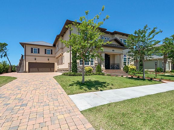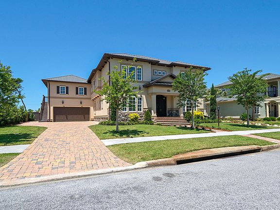 CONTINGENT, ACCEPTING BACKUPS. LUXURY, SOPHISTICATION & RELAXED LIVING only begin to describe this builder's personal residence in exclusive Tapestry Park. This spectacular home sits on a spacious lot & offers a taste of modern living without sacrificing the Mediterranean charm of the home. As you pull into the driveway, notice the metal rooftop, extra large garage entry with separate golf cart entrance & paved driveway. The impeccable landscaping & custom designed iron entry doors grab you. You might not immediately notice & then you see it. The architectural exterior details of the stone work, moldings, brackets & overhangs. Builder went a step further to include a 1/2'' drain screen installed under the stucco and elastomeric paint. Clearly, a maintenance free lifestyle is important