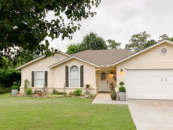 It is rare to find a home that has all the conveniences of being in town, but has the seclusion you would feel in the country. This house features a large covered patio, beautiful stone outdoor fireplace, and new fence. All light fixtures, door hardware, and cabinet paint have been recently updated. Open concept living/kitchen/dining area with vaulted living room ceiling. All appliances + washer and dryer included. You can walk down the trail to your own fire pit. There is also an 8x10 storage included on the property. For sale by owner. Call 918-226-9626 with questions or to schedule a showing.