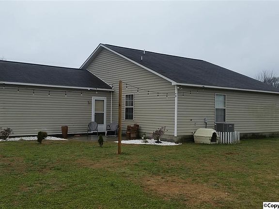 Albertville city limits, vinyl siding, 3 bedroom, 2 bath on level lot, open floor plan, living room with vaulted ceiling, 2 car garage, patio, great starter home.