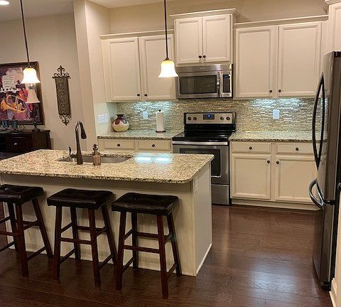 Beautiful town house! Loaded with upgraded granite and glass back slash in kitchen, island, master bath, stacked stone wall in dining room, finished hardwood floors throughout, stainless steel appliances covered patio with privacy fence