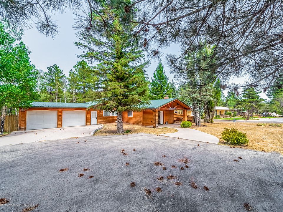 Large home in the heart of Ruidoso with a creek running across the back of lot. Views of Cree Golf, Pines, Aspens, and wildlife. Unique property has 2 large living areas in the larger part of the home with a fireplace in each. Another living area and kitchenette is in the guest part of home. An outstanding ''In Home'' office; covered decks and patios; wood flooring; beveled glass sliders access the large back deck. So many ways this home could be utilized. The land was part of the original Cree Ranch and the storage building/shed in the back is an original from the 50's. For easier maintenance, home has stucco on 3 sides and front is log for the mountain feel and look. Original 50's home was demolished and rebuilt.