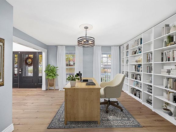 Welcome home to this beautiful 2-story w/ an impressive front porch and a gorgeous corner lot! Inside, you'll find a grand 2-story foyer and brand new LVP flooring throughout the main level. The center hall plan is open and perfect for entertaining, w/ a spacious den w/ built-ins, dining room, plus a large family room featuring a huge bay window and brick fireplace. The updated kitchen is a chef's delight w/ SS appliances, white cabinets, quartz counters, huge island, walk-in pantry, and a cozy breakfast nook! Upstairs you'll find a spacious primary suite w/ vaulted ceiling and an updated bath for a spa-like retreat. Three additional bedrooms and a cute full bath finish off the upper level. The finished LL features a huge rec room w/ 2nd fireplace, an adorable playhouse area, full bath, and an extra room for an office or exercise space. Don't miss the large newer deck w/ pergola and a lovely level yard w/ firepit area and mature trees! 1-year Home Warranty included for peace of mind!