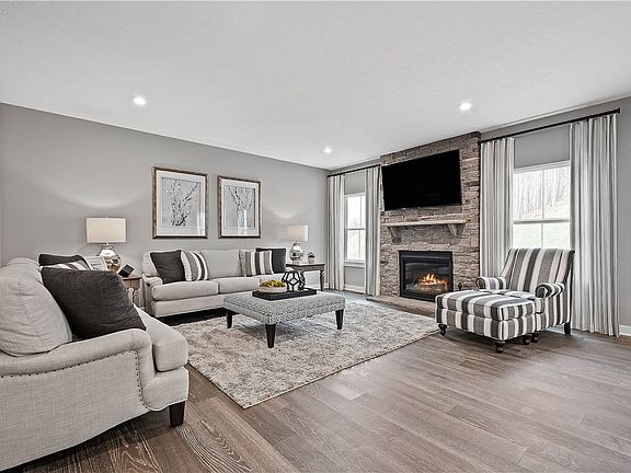 This Bear Run floorplan is a 4 bedroom single-family home blending style and space. Upon entering from the 3 car garage, the convenient family entry leads to a gourmet kitchen with a 9ft. island and huge walk-in pantry. The kitchen is next level: white quartz countertops, white linen cabinetry, and stainless steel appliances. The connected dining with access to the covered deck and family room featuring gas fireplace are ideal for entertaining. Also included on the first floor are an office and flex room, giving ample space to work from home while the kids have a place of their own as well. The upper level features three bedrooms in additional to a tranquil owner's suite which is flooded with natural light.