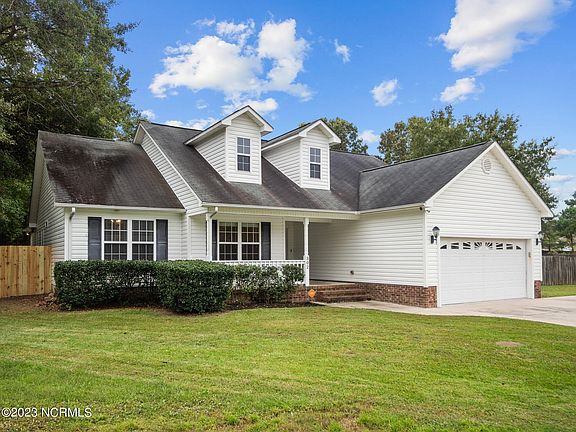 Situated in a quiet cul-de-sac outside of the Jacksonville city limits, this 3-bedroom, 2-bathroom, + Bonus Room home also has an INGROUND POOL. The property is quite large and includes a huge, fully fenced backyard. Step onto the covered front porch and open the front door to your new home. The bonus room/office is right inside the front door and contains a murphy bed and cabinets. The large living room is open and airy and is appointed by a cozy fireplace. The dining area is open to the living room as is the kitchen and eat-in nook. The guest rooms and primary owner suite are on the left side of the home and all are nicely sized. The owner's suite includes a large walk-in closet and a fully equipped en suite. The laundry room is off the kitchen and is also just inside the door to the garage. The garage is over-sized and will easily fit two vehicles while still leaving room for a workshop. Leading out to the backyard, you will find a covered screened porch and an additional deck. The pool is straight out from the deck. The backyard will impress those looking for space to entertain and have fun. The home is close to EVERYTHING to include Camp LeJeune, shopping, restaurants, hospitals, and recreation facilities so make your appointment today.