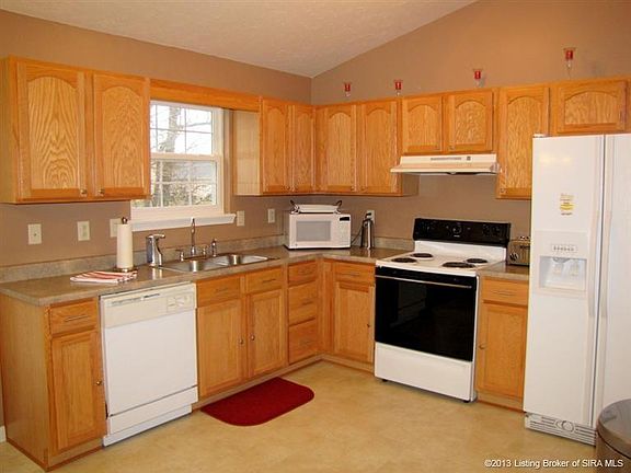 Welcome home to a BEAUTIFUL 3 bedroom 2 bath home nestled in a cul-de-sac lot! This home shows like NEW! This home FEATURES a NICE SIZED yard, OPEN floor plan, LARGE Master with TRAY ceiling and Walk in closet, LARGE Master BATH, FULL SET of kitchen APPLIANCES stay, FRENCH style doors to the SCENIC VIEW of the back yard, PATIO for entertaining and WOODED LOT for PRIVACY. ALL bedrooms are nice SIZED rooms, VAULTED ceilings in Living room, Kitchen and Dining Area, Plantation Blinds, LARGE Laundry Room off the 2 Car Garage, Over seeded yard in 2011, New Hardware, Lighting fixtures and HOME WARRANTY! You don't want to miss seeing this home!!\n\nInformation Deemed Reliable But Not Guaranteed. Information provided by the Southern Indiana REALTORS® Association, Inc. © 2010 SIRA Multiple Listing Service. All rights reserved. Brokered And Advertised By: RE/MAX FIRST Listing Agent: Bobby Bass
