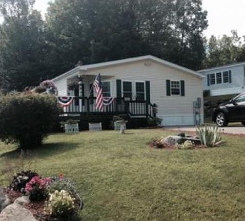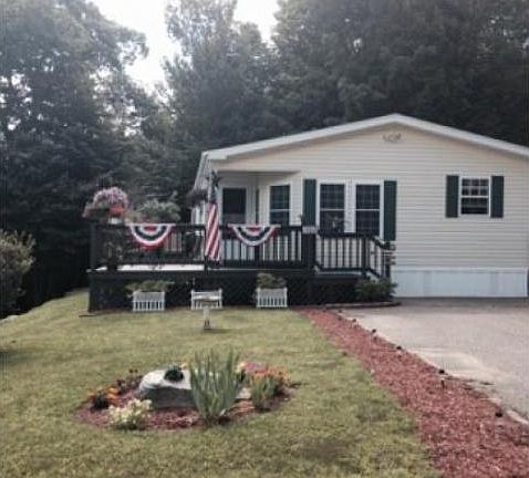 Pride of ownership shows thoughout this well maintained over 1500 sq ft home.Spacious livingroom/ diningroom with sliders to deck and vaulted ceilings. Large eat in kitchen with charming windowed nook. Master bedroom with with ensuite bath. and 2 additional bedrooms. Skylights, ceiling fans, central air, laundry room, storage shed, well landscaped yard that backs onto wooded area. Updated roof and appliances. A Must See