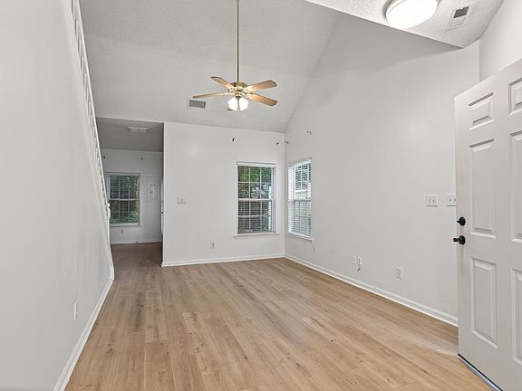 Newer lvt flooringOne half bathOpen floor planNeutral color paletteThree bedroomsSoaring vaulted ceilingsAmple natural light