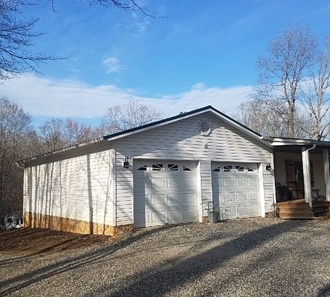 This house sits on 6.14 acres on a very private location. Enjoy sitting on the front porch swing listening to the rain on the tin roof or sit on the back deck and enjoy the sound of the flowing creek that runs along the back of the property line. House was remodeled in 2015 with almost $40k in improvements including a stone fire place w/gas insert, 8 x 80 covered front porch, tin roof, moisture barrier laminate wood flooring throughout the house (excluding the bathrooms), custom made blinds and more. This 3 bedroom, 2 bath split bedroom design has an open concept living room / dining room area, 2 spacious walk in closets in 2 of the bedrooms, a 2 car garage with a spacious closet and attic area in garage for even extra storage . A separate 30 x 24 garage/workshop with power, cable hookup, woodstove, oil heater and a ½ bath, barn with fenced pasture and an adjacent storage building and another storage building near the garage/workshop. Enjoy breathtaking views of the sunrise & sunsets while glancing up the driveway and watching deer cross from the field into the woods.