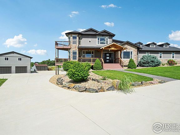 Welcome to 302 Dove Lane, a luxurious estate spanning 5,319 square feet, nestled on a 2.34-acre lot in the exclusive gated community of Willis Farms in Berthoud, Colorado. The openness is expanded with additional HOA maintained acreage surrounding the home. Here are just a few features you will love; Gourmet Kitchen: Equipped with quartz countertops, a farmhouse sink, center island with prep sink and induction cooktop, double ovens, two dishwashers, a gas cooktop with pot filler, and an oversized walk-in pantry. Dual Primary Suites, one on the main floor and one on the second floor: Both suites feature spacious walk-in closets with dedicated washer/dryer units and private balconies; the upper suite includes a cozy fireplace. Walkout Basement: The basement features a full secondary kitchen and a theater room complete with stadium seating, surround sound, and projector. Outdoor Amenities: The expansive lot boasts mature landscaping, irrigated garden beds, a chicken coop, and a playground. Detached Workshop: A 1,200 sq ft shop with dedicated 100-amp service and an unfinished second story ready for customization. Energy Efficiency: Fully owned and paid off solar panels contribute to reduced electrical costs. There are two high efficiency furnaces to support this expansive home along with two air conditioning units. Additional highlights include a newer roof installed in 2018, a new water heater from 2020, a gas line for a grill on the back patio, frost-free water spigots, and a central vacuum system. All appliances, including washers and dryers, are included. Experience unparalleled luxury and comfort in this meticulously designed home. Schedule your private viewing today to fully appreciate all that 302 Dove Lane has to offer.