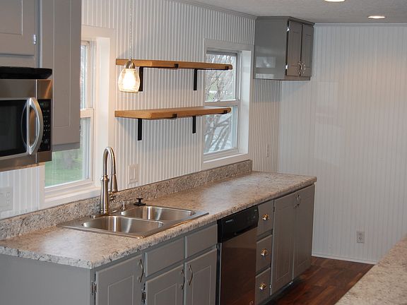 Total makeover! Updates throughout in this 4 bedroom walkout ranch with 2 car attached garage. Open concept kitchen with tons of storage and countertop space. New hardwood floors flow through the kitchen, dining, and main floor family room. Full bath on main is completely new with tiled shower. Large family/rec room in the basement. Lower level bath completly remodeled with tile shower. Huge deck overlooks open back yard. Located in LeGrand, desireable East Marshall School district.