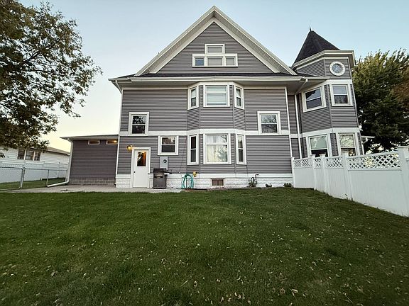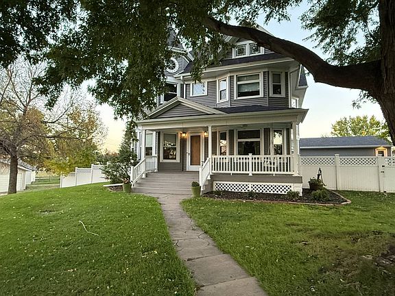 5 Bed | 2.5 Bath | 4,174 sq. ft. (+ 1,567 sq. ft. partially finished basement) Step inside this magnificent, fully restored Victorian masterpiece and fall in love with every detail. Situated on a quiet street in Bassett, this 21/2-story home is a showpiece of craftsmanship, charm, and character - blending historic beauty with thoughtful updates. With 4,174 sq. ft. above grade and an additional 1,567 sq. ft. in the partially finished basement, space and elegance abound. From the moment you arrive, the home's round turret with a cone-shaped roof, covered front porch, and mature landscaping set the stage for what's inside. Step through the front door and be greeted by a grand wood staircase featuring decorative newel posts and spindles, and sweeping first steps that sets the tone for this stunning residence. Just off the entry, a window-lined nook within the turret offers the perfect spot for morning coffee or a good book. Rich original woodwork, solid multi-panel doors with antique knobs, tall ceilings, refinished wood floors, and thick trim with ornate headers showcase the craftsmanship of a bygone era - meticulously preserved and restored to perfection. The spacious living room features crown molding, a gas fireplace surrounded by decorative tile and a wood mantel, and a vintage beveled mirror framed in intricate woodwork - creating an inviting space that radiates warmth and sophistication. Flowing seamlessly from the living area is the formal dining room, complete with a built-in China cabinet featuring glass doors with drawers, multiple wall sconces, and a chandelier that cast a soft glow across the room. The kitchen and main bath were tastefully remodeled in 2013, staying true to the home's vintage charm while offering modern convenience. The kitchen features custom cabinetry, tile flooring, decorative tile backsplash, and a movable island perfect for meal prep or gatherings. The main floor bathroom highlights a pedestal sink and classic black-and-white tile flooring, blending style and authenticity. A charming Dutch door leads to a spacious laundry and drop zone with ample counter space and seven tall built-in lockers, conveniently located just off the attached 2-car garage. Upstairs, you'll find five generous bedrooms, each filled with natural light and showcasing more of that gorgeous woodwork. The second-floor bathroom includes a dual-sink vanity and walk-in shower, again accented by black-and-white tile flooring. The third-floor finished attic is a true retreat - complete with wood shiplap walls, a wet bar, and panoramic views of the Nebraska countryside. The highlight is the top of the turret, featuring round windows and a soaring vaulted cone ceiling - a one-of-a-kind hideaway perfect for relaxing, reading, or enjoying a quiet evening. The partially finished basement adds even more living space, including a large family room, dual-sink bathroom with walk-in shower, and workbench and storage area with built-in shelving. Outside, the beauty continues. Enjoy summer evenings on the front covered porch or host gatherings on the back deck overlooking a fenced yard with white vinyl fencing, sprinkler system, and established trees and landscaping. Recent updates provide peace of mind, including new siding (2021), new windows (2010), updated wiring and plumbing, remodeled kitchen (2013), and a brand-new roof and gutters (2025). All exterior trim has been wrapped with aluminum siding, making the exterior virtually zero-maintenance while maintaining its timeless character. This home is not just a property - it's a piece of history brought into the present. With every corner offering something special, 302 E Bertha Street stands as one of Nebraska's true architectural gems. Year Built: 1908 Lot Size: 170'x125' Property Taxes (2024): $3,438.22