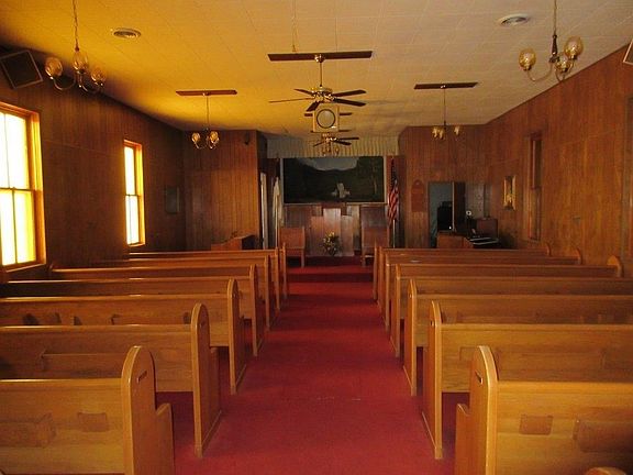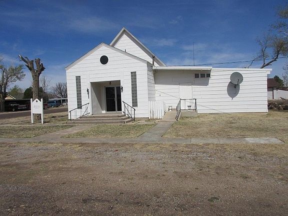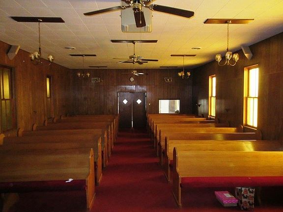 Property is located on a corner lot, large 24 x 44 fellowship hall/rec room, 8 x 13 kitchen with built ins, double sink, storage and cooking gas range/oven, refrigerator, sanctuary full equipped with pews, pulpit, baptistery, central heat & air, ceiling fans. Call Landmark Real Estate Center @ 620-624-1212 for more information or to view this property.