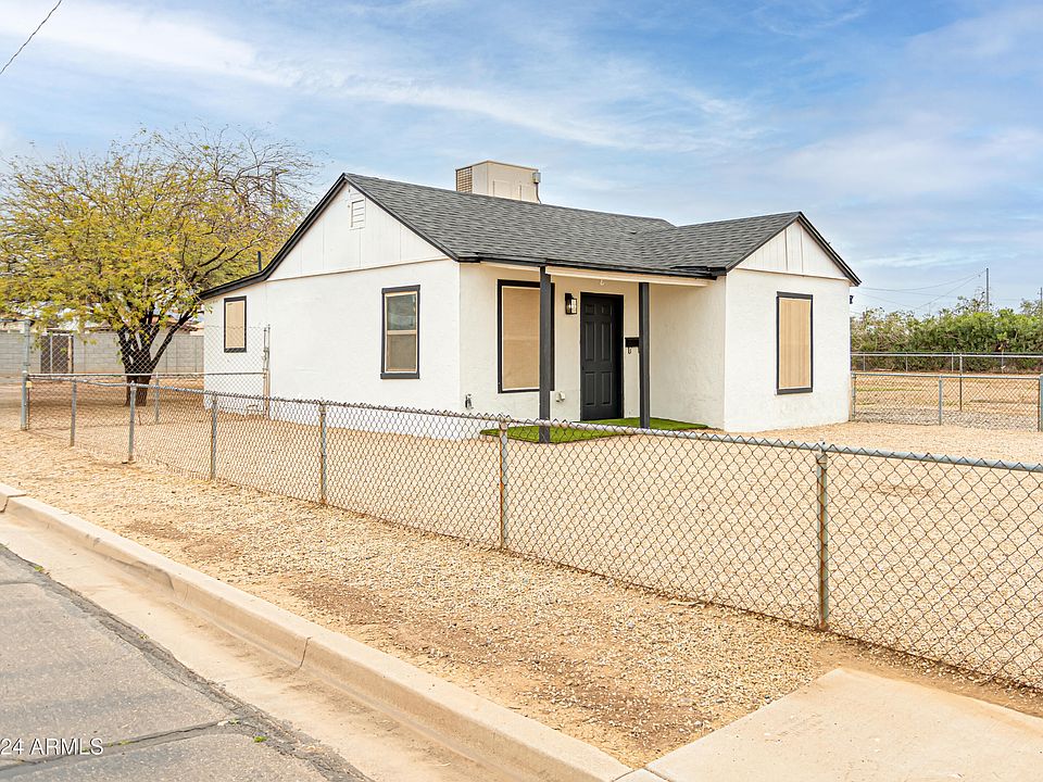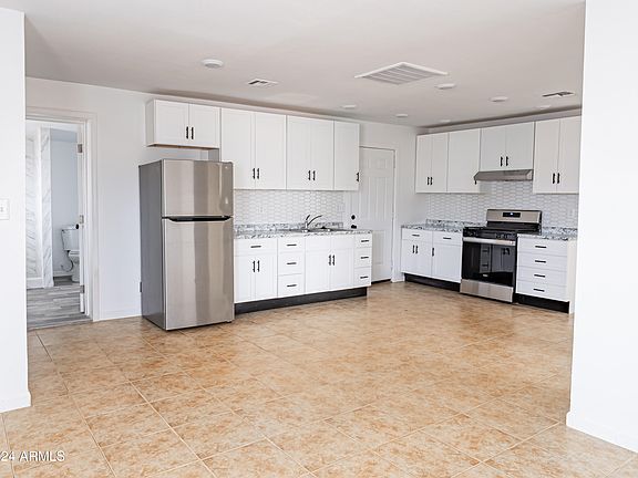 Introducing a charming and meticulously renovated home located at Avondale, AZ. The home itself boasts a comfortable and cozy interior, situated on an expansive lot spanning 7,640 sqft. This property offers 2 bedrooms 1 bathroom, making it an ideal starter home for individuals or small families. From the moment you enter, you'll be greeted by the warmth of the newly renovated interior, complete with fresh paint, new flooring, and stylish finishes throughout. The heart of the home lies in its beautifully renovated kitchen, equipped with sleek cabinetry, stainless steel appliances, and laminate countertops. The highlight of the home is undoubtedly the custom-designed bathroom, featuring modern fixtures, a luxurious shower, and stunning marble countertops. its spacious lot, providing ample outdoor space for various activities and potential expansion opportunities. The presence of an RV gate adds further versatility, allowing for convenient storage of recreational vehicles or additional parking options. With no HOA restrictions, you'll have the freedom to personalize and utilize the property to suit your needs. Beyond the confines of your new home, you'll find a vibrant community filled with amenities and attractions to enjoy. Indulge in your favorite caffeinated beverages at the nearby Cold Water Coffee House or unwind with some friendly competition at the local bowling alley. A variety of shopping centers are also within close proximity, ensuring convenient access to everyday necessities and entertainment options.