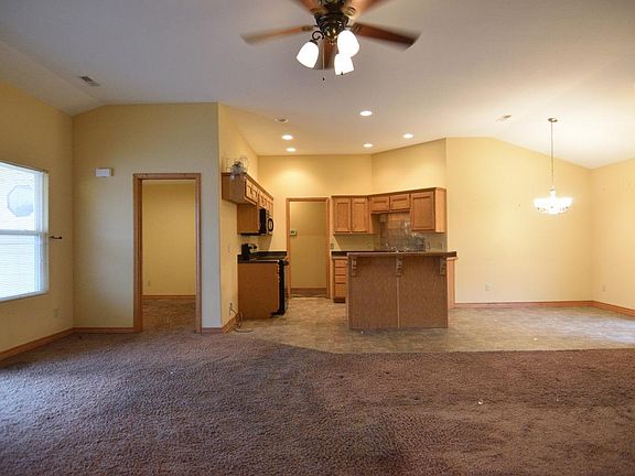 Nice quiet cul-d-sac, offers large open space living room with fireplace, open kitchen area, has an office. 3 3 bedroom 2 baths with an office that could be a 4th bedroom, family room or office. Large master bedroom, with closets and large bath. Handicapped tub has been removed so you have plenty of space to add a jacuzzi tub. Bath now has a walk in shower. Deep garage will allow for longer vehicles. One year home Warranty from HMS will be provided by seller. Vaulted ceilings give a much larger feel for this home. Split bedroom arrangement for privacy. 2 baths. Expanded patio on back of house. Storage building will stay. Quiet dead-end street for feel of country living.