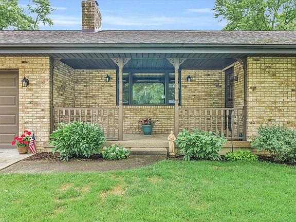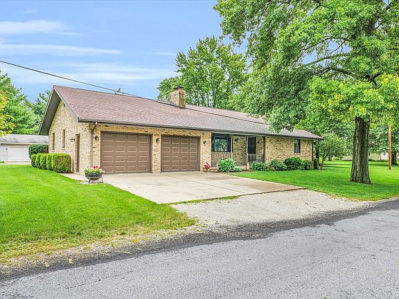 This charming property in the small town of Pesotum located near Hartman Park is situated on a corner lot and boasts a spacious 2-car garage. Inside, you'll find 3 bedrooms, which include two large rooms with double closets, and 2 full bathrooms-one with double sinks and a luxurious whirlpool tub, and the other featuring a convenient step-in shower along with the washer and dryer. The large living room is highlighted by a brick fireplace with built-in shelving on either side, creating a cozy and functional space. The kitchen is well-equipped with an island, extra counter space, and ample cabinet storage, complemented by an adjacent eating area perfect for casual dining or meal prep. The full unfinished basement offers a workshop area with storage cabinets, ideal for DIY projects or additional storage needs. Outside, a nice composite deck provides a perfect spot for outdoor relaxation and entertaining.