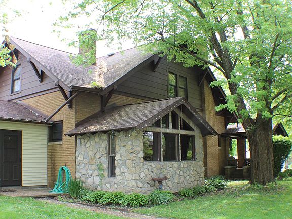 Welcome to this nice brick home on a corner lot in Vevay, Indiana. This home is a Sears and Roebuck home with 4 bedrooms, 2.5 baths, a formal dining room and plenty of character, including pocket doors and a nice built in cabinet in the dining room. Upstairs is where you will find three of the bedrooms, each with their own oversized closet space. On the main floor you have the master bedroom along with a nice great room off the kitchen. The basement is partially finished with a large family room and a half bath. Outside you have the attached garage, a nice detached garage and a private patio area. Come sit on the porch and watch the cars go by, call today for your private showing.