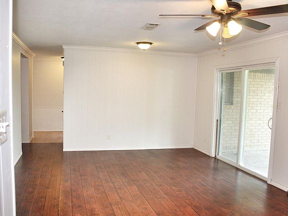 This quaint, nicely maintained 3 bedroom, 2 bath, 2 car garage home is nestled in a tight-knit community and a great place to call home. Home sits on almost 1/3 of an acre with an 800 sqft metal building in the back yard and over 300 sqft back covered patio. Home features a great front porch, metal roof, mature oak trees and a great back yard that backs up to farm land for great privacy. Interior home features all wood surfaces and vinyl flooring in kitchen and baths. Large open kitchen showcases ample counter space, abundant cabinets, gas range, dishwasher, and counter-height eat in kitchen with adjoining kitchen dining/living room. Family room looks onto the covered front porch. Spacious owner's bedroom with 2 closets (walk-in & wall) with an en suite. Secondary bedrooms are perfect for children, guests, or an office. Secondary bathroom features shelving, vanity/cabinet space - great for storage & shower/tub combination. Separate laundry room/mud room off of garage. Washer/Dryer included. Make this your home today! Minimum 1 year lease. Washer/dryer available for $50 a month Renter is responsible for all utilities - gas, electric, water. Security deposit and 1st months rent due prior to move-in. No smoking allowed. Small pets (up to 20 lbs) permitted - pet deposit per pet.