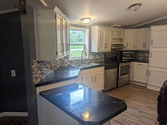 This a 3 bedroom 2 bath manufactured home has been remodeled and move in ready. It's located in a quiet neighborhood just inside city limits. This home has had a new furnace and air conditioning unit installed this year. It features 1200 sq ft of living space , and comes with kitchen appliances. It has a large covered front porch, along with a spacious one acre yard. It has a large outbuilding with a newly built lean-to. It has a pool, and a spot ready to plant a garden.
