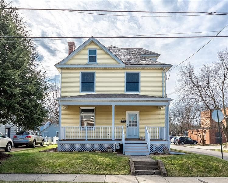 Charming home located in the heart of Zelienople, walking distance to shopping, dining and parks! Features include beautiful hardwood flooring throughout most of the house, Huge Eat in Kitchen with Center Island (butcher block surface), SS Appliances, corian counter tops, and a spacious eating area, first floor laundry room and a full bathroom, Formal Dining Room has large Bay window bringing in lots of natural light and beautiful French doors that lead to the Family Room where you will find gorgeous woodwork and a beautiful staircase leading to the second floor. The spacious Master bedroom has a walk in closet with built in shelving. The third floor is an open floor plan and has tons of possibilities...great for 4th Bedroom, theater room/ play room, or Office. Covered front porch and large covered back deck lead to the fenced in back yard. Extra parking along side the 1 car detached garage. This home is located close to I-79, PA Turnpike and Cranberry Shopping.