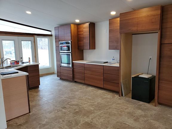 - Kitchen Island, Vaulted Ceiling(s), Tub/Shower Combination, Countertops-Solid Surf, Custom Cabinetry