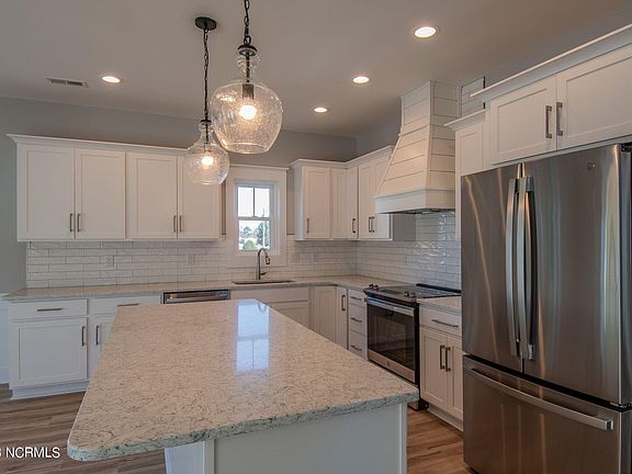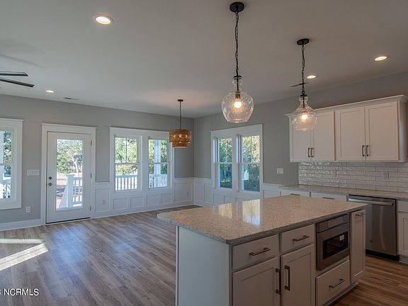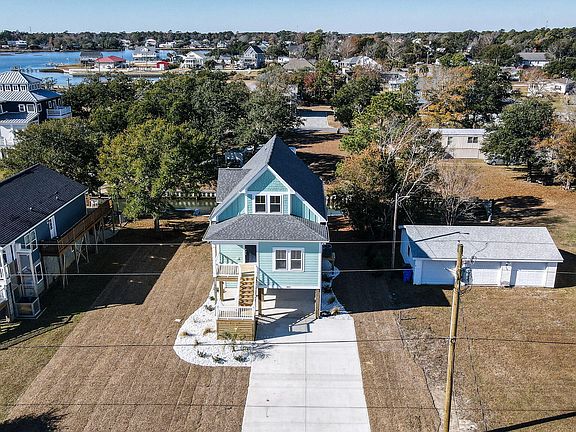 HUGE REDUCTION IN PRICE ! JUst in time to get settled for the spring. Waterfront new construction coastal cottage in popular Cape Carteret. New concrete slat bulkhead and walkway along the waterfront protected canal. Quick boating access to the Intracoastal Waterway. Fully sodded yard, coastal landscaping, with firepit hardscape feature along waterfront. Three bedroom with three full bathrooms equipped with tile showers. Glamorous kitchen with quartz , island and lots of counters which open to the living space. All stainless appliances included , refrigerator, stove/oven, dishwasher, microwave, washer, and dryer. The living space has high celings , lots of natural light an abundance of windows, and a unique and modern fireplace Beautiful and upgraded features throughout the home. Impact windows to Florida codes ! Must see to appreciate. Too many features to list (review Feature Sheet in MLS Documents). Great location with low property taxes , Croatan school, convenient to grocery stores and restaurants, 5 min to Emerald Isle Bridge , 10 min to historic Swansboro, 20 min to Morehead City! Changes were made to plans listed in Documents. Buyer shall verify as built conditions. House is larger than drawings show. Pricing for two ways to have a 10k boat lift installed already designed .