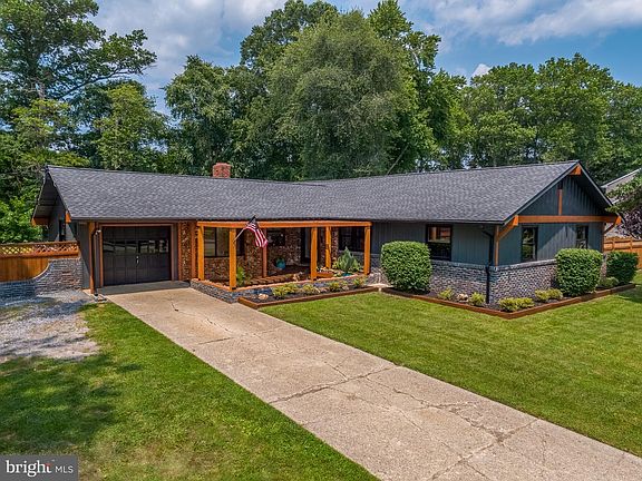 Wow!!! This renovated custom-built home is it! Walk up to the front door and cross through the pergola and enjoy the sound and view of the Frank Lloyd-style stream that flows under the front entry walkway. Enjoy the tranquil sitting area with 2 benches and aquatic plants. This area features walls with quartz rock wall details. Very different. As you enter the open concept floor plan featuring vaulted ceilings with wood beams, skylights with motorized blinds you will immediately know this is not your average home. Spacious living room with fireplace opens into the custom kitchen. There are newly refinished hardwood floors throughout the foyer, living room, dining room and hall. The kitchen features Kraft Maid cabinetry, matching Kitchen Aid stainless steel appliances less than 3 years old, a wall oven and microwave, a pantry, and a large island with a stovetop and bar stool seating. There is a built-in desk/ office area as well. The cabinets feature under the cabinet lighting and uplighting. The dining room has plenty of space for special gatherings and is completely wrapped with large windows, perfect for view the huge backyard. The primary bedroom has enhanced wood vaulted ceilings. Very dramatic! There are 2 other bedrooms and a hall bath as well. The hall bath has been remodeled and features a wood plank wall and beautiful ceramic tile. An en suite full bathroom with a walk-in shower will be installed in the primary bedroom prior to settlement. There is a utility room that could be finished into another living space, family room, office, or art room. Exit to the backyard and enjoy the privacy of the large lot while enjoying a view of the woods and nature. There is a patio with a fire pit for all to enjoy along with a partially fenced yard. The lot is over 1/3 of an acre. The 1-car garage completes this home. The list goes on. Anderson windows throughout, A/C and heating unit are less than 3 years old, tankless hot water heater, newer roof, etc... Come see this unique home before it's too late!