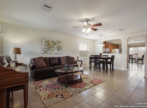Gently lived in, well maintained home. A spacious floor plan inside and out! Four large bedrooms with the master bedroom downstairs. Storage galore! Kitchen opens to dining and living areas. Upstairs game room 22x18--great place for family night! Flooring and paint neutral. Covered porch leading to .38 acres! Lots of room to roam! Private backyard and green space behind the home. New roof, has gutters. Minutes to Judson HS and Randolph Air Force Base. Access to highways, shops, & Ft. Sam Houston.