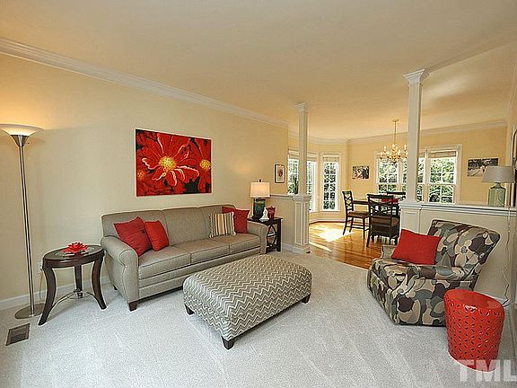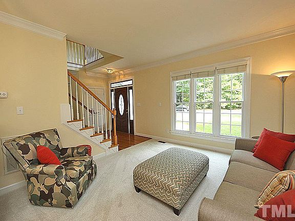 Sellers Ready,Price Reduced! Tucked in The Lawns/Wimbledon in Cary! IMMACULATE! Fiber Cement, Replumbed ,Tankless WH, site-finished Oak floors, fresh paint. SideEntry Garage on flat, landscaped lot! Open Plan. Abundant Windows,naturally bright living! Updated Kitchen,NEW MaBath! 5 BdRm/3.5Baths+3rd flrBonus/3skylights+full Bath. Spacious rooms, plenty Storage/W-I Storage! Low traffic-located corner 2 small cul-d-sacs. Woods across street w/paved access trail to community pool, playgrnd, tennis courts!SEE!