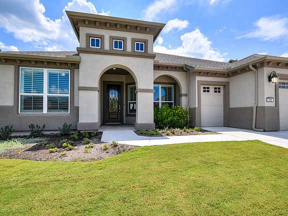 In the heart of Sun City looking out high over the 15th fairway, the clean lines, light, and southern facing of this exceptional home offer a quiet retreat in the middle of an amazing amount of energy and happy sociability within minutes of the front door. Three private golf courses are available only to residents and three pools can be accessed in minutes by a short walk or golf cart ride. Play tennis, pickleball, bocce ball, softball or walk and bike the numerous trails with new or old friends. Take advantage of classes for dancing, cooking, and languages, or plan trips...adventures abound for individuals, couples, or groups who have found common interests. Amenity centers, Fitness centers, Community gardens, and an Amphitheater create opportunities for active pursuits and entertainment. This home offers a peaceful environment for quiet moments and the perfect setting for entertaining any number of friends and family. Large, soft gray tiles throughout the home link rooms for gatherings in bright spaces with high ceilings, crisp, white trim, and large windows. The living room looks out to a covered patio, sitting up high with a southern vista view of sunrises, sunsets, and bird-watching (egrets, blue herons, and cormorants inhabit fishing ponds within the community). On special occasions, city fireworks are on display....all just outside the back door of this very desirable site. Modern finishes in a polished kitchen feature lovely, softly patterned backsplash tiles and quartz counters for roomy prep surfaces. Light perimeter cabinets and a charcoal island house KitchenAid double wall ovens, a five-burner gas cooktop, and a raised dishwasher. Gas fireplaces faced with soft chevron tiles grace the living and the hearth rooms, both off the kitchen, allowing separate groups to converse and still be part of the same gathering. The large main bedroom shares the view and opens to a modern bath with a glass shower and double vanities. Life is full in Sun City with the warm embrace of new friends waiting to be made and creative endeavors at every turn. And at the end of the day, there is no better place for peaceful repose than the perfect environs of this home. New adventures await and the future looks pretty fun from here!