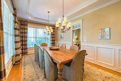 Exquisite Transition Style Colonial home with a large, private backyard - a rare luxury in Meadowmont! The home features 5 bedrooms, 4.5 baths and a newly renovated 3rd floor recreation room and office/bonus room with full bath. The first and second floors, including all bedrooms, are all a beautiful hardwood with crown molding, wainscoting and plantation shutters. Short walk to Meadowmont Village and Rashkis Elem School. Additional photos can be seen at bit.ly/302FaisonDr
