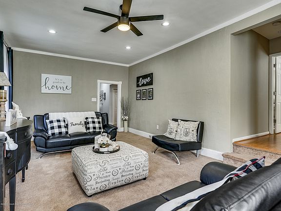 - Ceiling Fan(s), Kitchen Island, Recessed Lighting, Dining Area, Carpet, Open Floorplan, Combination Dining/Living, Upgraded Countertops, Family Room Off Kitchen, Chair Railings, Tub Shower