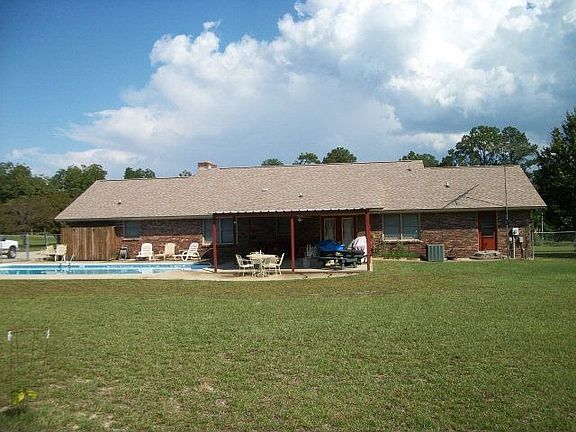3 Bedroom, 2 Bath Brick Home sitting on 3 acres, landscaped, with attached 2 car garage. Fence, in ground salt water pool (18 x 36)installed in 2008. New roof in 2008, new carpet, tile and laminate installed in 2007. Camera system with recorder, alarm. Gas logs with remote control. Septic tank cleaned in 2009. Detached shop, with heating and cooling, wired.