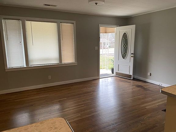 The location is great on this updated cute cottage. Great curb appeal, detached portable carport with storage and a metal workshop area. Inside has refinished hardwoods, fresh paint and a house full of appliances. The kitchen has refrigerator, stove and of room for dining. White cabinets. The bath is a three piece white with white floors. Both bedrooms have hardwoods. The living area has hardwood flooring and new lighting. New light fixtures and blinds throughout. This one is ready to move in and call home. Back deck ready for cookouts.
